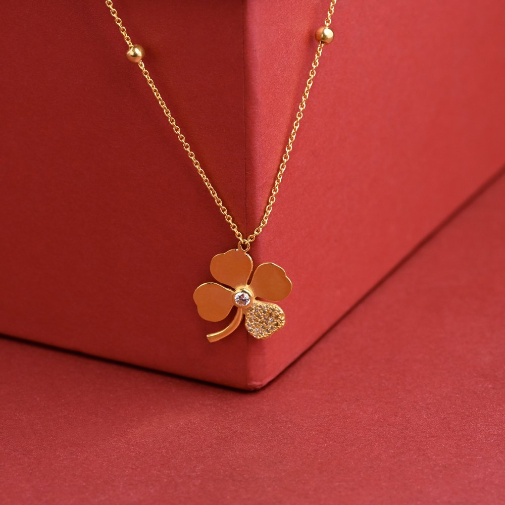 22KT Yellow gold stunning golden Four Leaf Clover Pendant