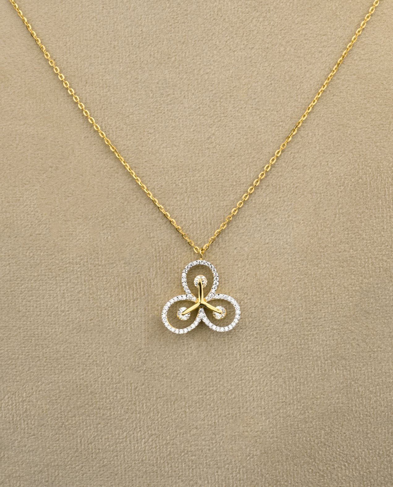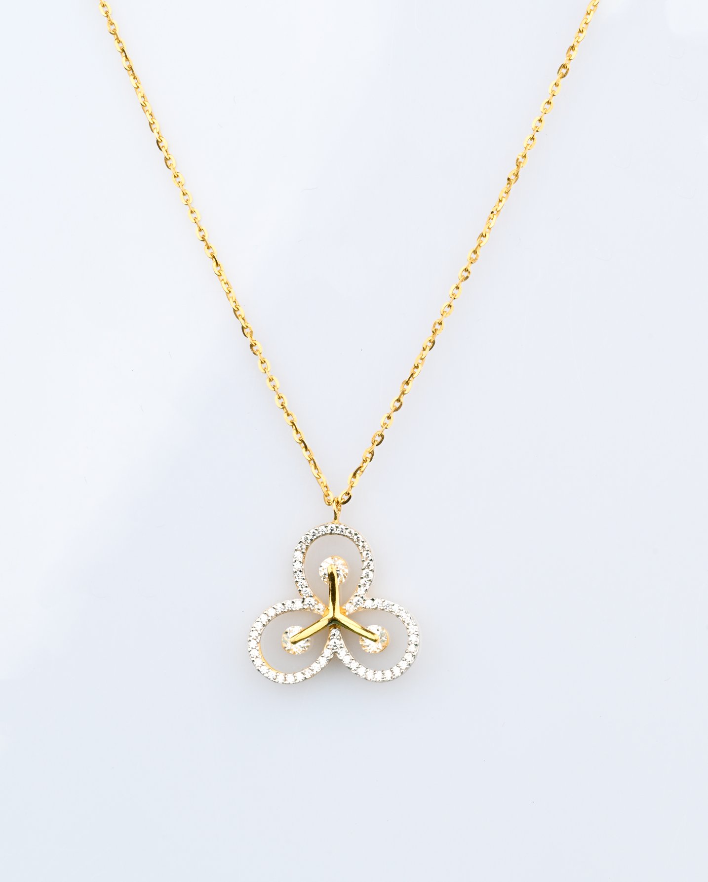 22KT Yellow gold necklace studded with white marquise shaped cubic zirconia stones