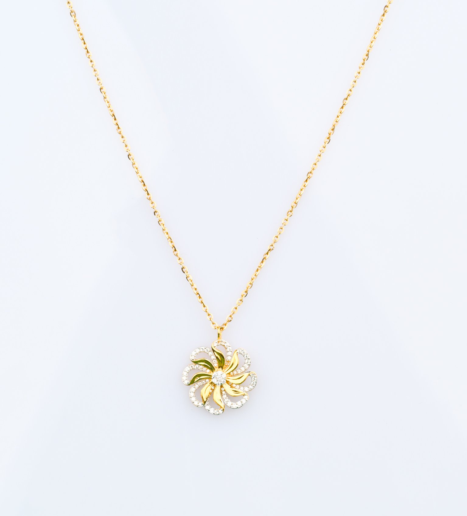 22KT Yellow gold necklace studded with white marquise shaped cubic zirconia stones