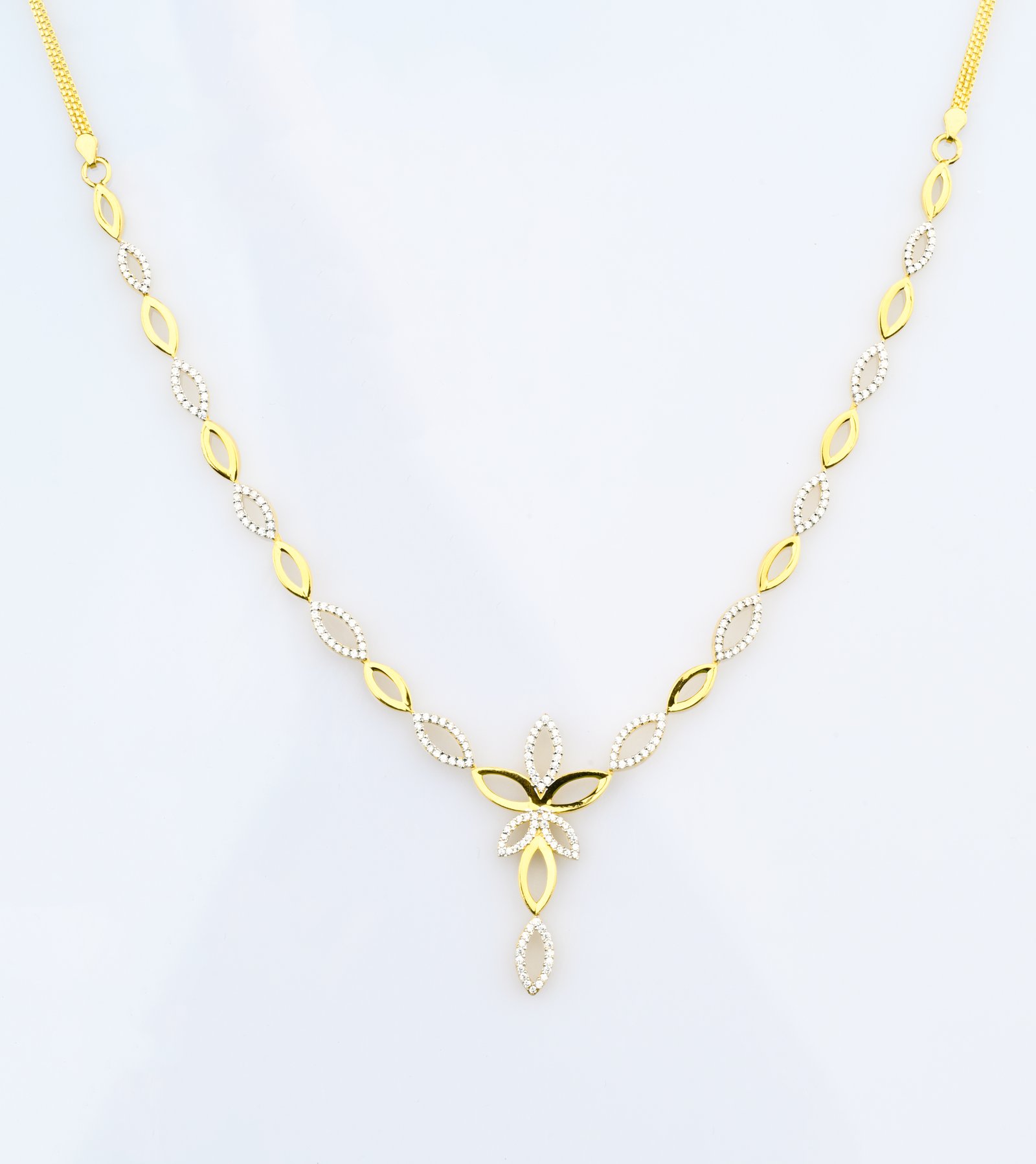 22KT Yellow gold necklace studded with white marquise shaped cubic zirconia stones